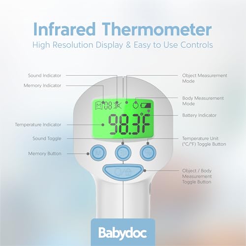 Babydoc Medical Grade FSA-HSA Eligible Baby Thermometer for Kids, AccuTemp German Sensor, 3-in-1 Safe Non-Contact Infrared Forehead Thermometer, Object Mode for Milk or Bathwater, Infants, Children