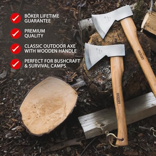 BÖKER PLUS® Appalachian Axe - Professional Bushcraft, Outdoor & Survival Axe - large carbon axe with hickory wood handle - professional camping axe with rhenish head 21.16 oz made of carbon steel 1055