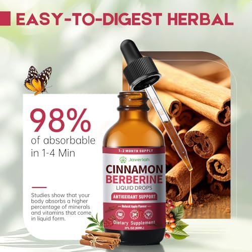 Sponsored Ad - Berberine Drops with Ceylon Cinnamon Bitter Supplement,Berberine HCL Liquid Drops with Turmeric,Green Tea,Apple Cider Vinegar,Black Seed Oil for Overall Support & Digestive System 2 FL