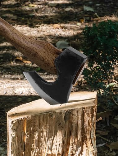 The Berserker - Camping Hatchet - Bushcraft Axe for Wood Chopping Carving- 15.7" Hand Axe with Leather Sheath