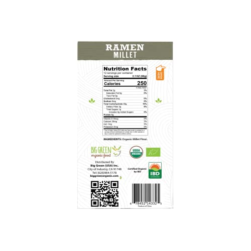Big Green Organic Food- Organic Millet Ramen, Gluten-Free, Lectin-Free, Non-GMO, Vegan, Wheat and Rice Alternative (2.11 Ounce (12 Pieces))