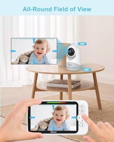 Blemil Upgrade Video Baby Monitor with Camera and Audio 6" Large Screen, 35-Hrs Battery, No WiFi Baby Monitor, Remote Pan/Tilt/Zoom Camera, 2-Way Talk, Night Vision, Temperature, 1000ft Range