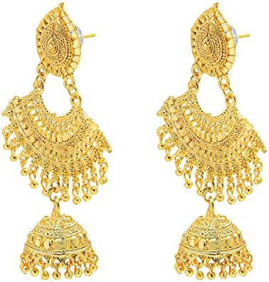 Sponsored Ad - Bodha Traditional Indian Handcrafted Gold Plated Designer Traditional Ethnic Chandbali Jhumka Earrings for Women (SJ_1949)