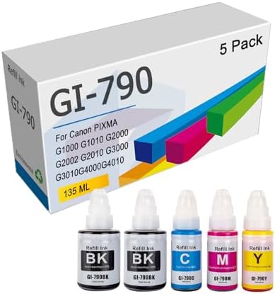 Sponsored Ad - GI 790 Ink Bottles Replacement for Canon GI-790 Works with PIXMA G1000 G1010 G2000 G2002 G2010 G3000 G3010 G4000 G4010 Printer, High Capacity Ink Refill Bottle,5 Pack-1 Set