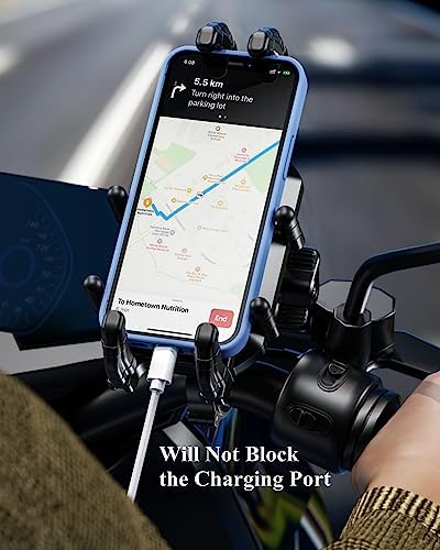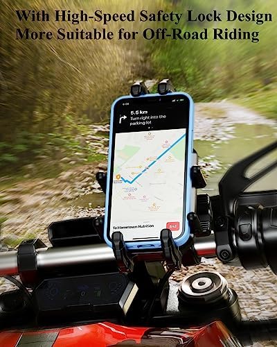 Motorcycle Phone Mount Holder with Vibration Dampener & High-Speed Secure Lock, Anti-Theft Handlebar Cellphone Cradle for Bike Bicycle Scooter ATV, Adjustable Size, Fit 5.4-7.2'' Smartphone