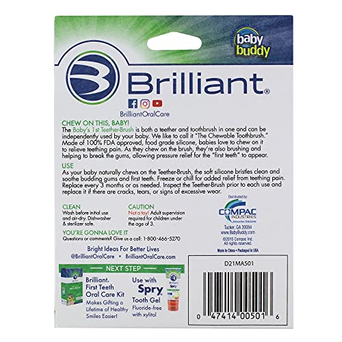 Brilliant Oral Care Baby’s First Toothbrush, Smooth Silicone Bristles Gently Clean Tender Teeth and Gums, for Ages 4+ Months, Blue, 1 Pack