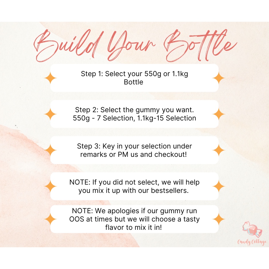 Candy Cottage 550G/1.1KG Gummy Bottle - MIX AND MATCH ASSORTED GUMMY SOUR GUMMY AND CANDY BIRTHDAY GIFT DOOR GIFT