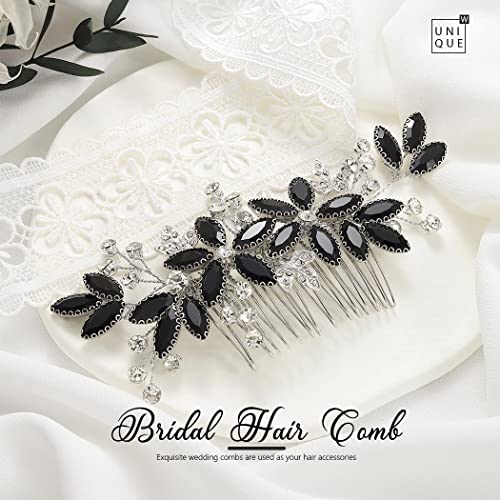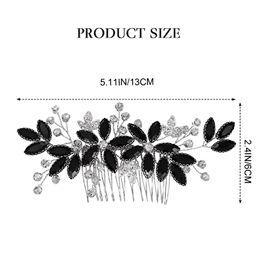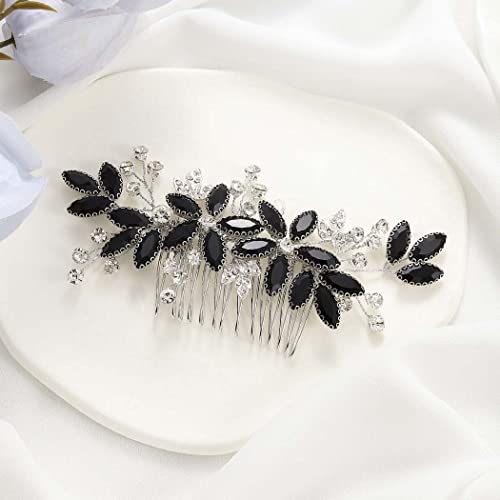 Casdre Crystal Bride Wedding Hair Comb Silver Leaf Bridal Hair Accessories Rhinestone Party Prom Hair Piece for Women and Girls (D Black)