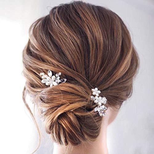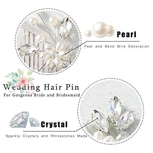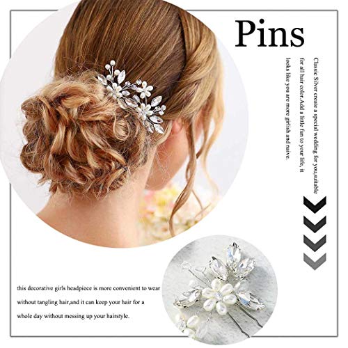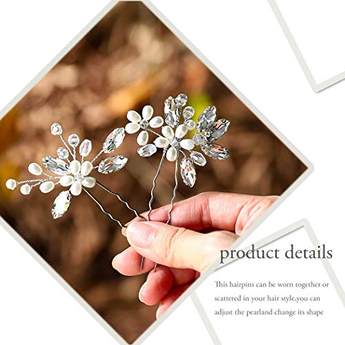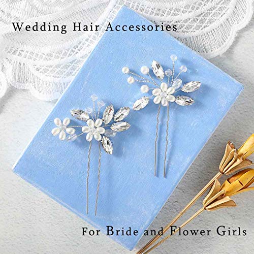 Catery Flower Bridal Hair Pins Pearl Wedding Clips Hairpiece Crystal Bridesmaid Headpiece Accessories for Women Pack of 2 (Silver)