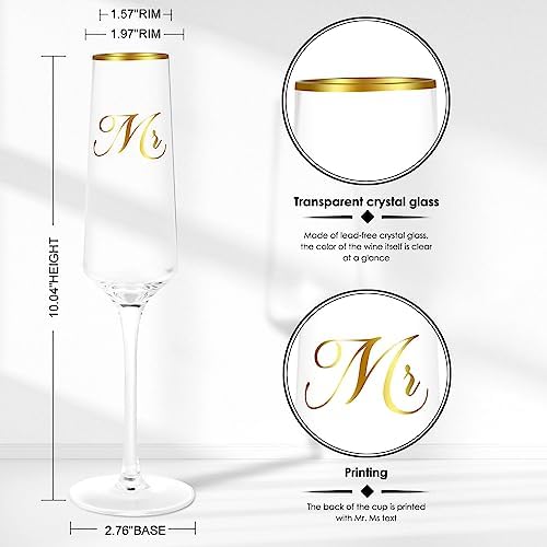 Sponsored Ad - Mr and Mrs Wedding Champagne Flutes with Long Stem,Bride and Groom Toasting Crystal Glass Set, Bridal Shower Gift, Engagement Gifts for Couples, Newlyweds, Anniversary
