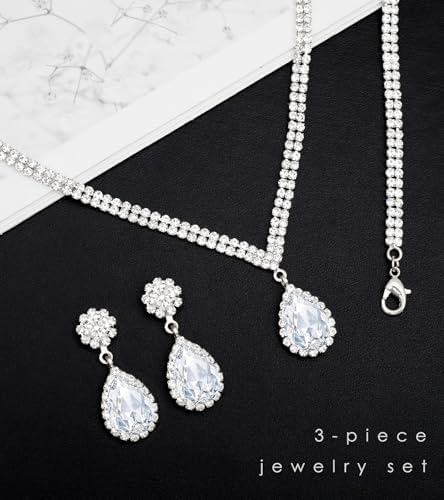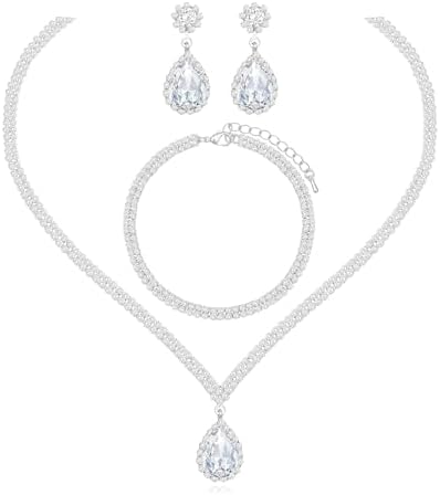 Sponsored Ad - Elegant Silver Crystal Wedding Necklace Earrings Bracelet Jewelry Set for Women Brides Bridesmaids Prom Party Costume Accessory Bridal Jewelry