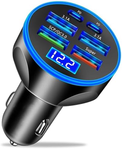 Sponsored Ad - Super Fast Charge USB C Car Phone Charger Adapter 6 in 1 with Voltage Display 250W Multi Port Cigarette Lighter USB Charge for iPhone 16 15 14 13 12 11 Samsung Galaxy Huawei Oneplus Opp