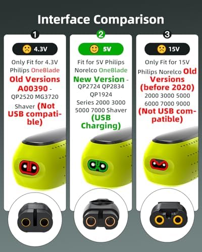 5V Fast Charger Fit for Philips Norelco One Blade 360 QP2724 QP2834, Wet&Dry Series 2000 2400, QP4631 QP6542 QP6552 QP4530 QP1924 QP1324 MG7910 MG5910 MG9510 MG3919 MG9525 for Phillips Shaver