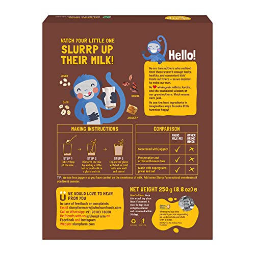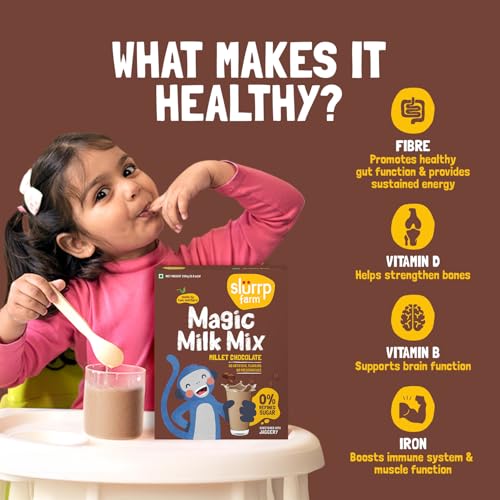Slurrp Farm Magic Milk Mix Powder | Millet Chocolate Drink for Kids & Adults | No Refined Sugar, High Calcium & Fiber | Tasty, Easy to Digest & Nutritious Beverage | 8.82 Oz (250g)