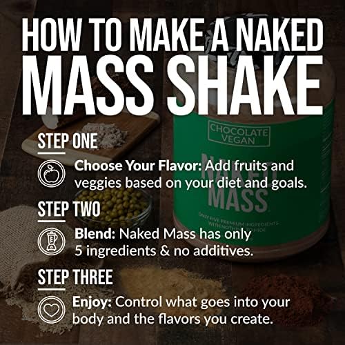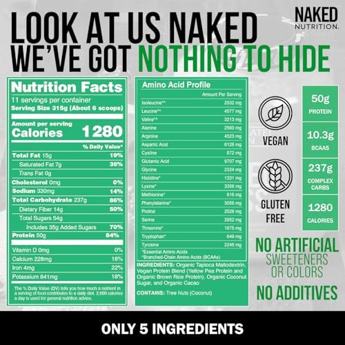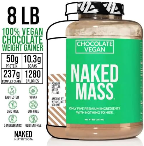 NAKED Vegan Mass - Chocolate Vegan Weight Gainer - 1,280 Calories, Non-GMO, Soy & Gluten Free, No Artificial Ingredients - 8LB Bulk - 11 Servings