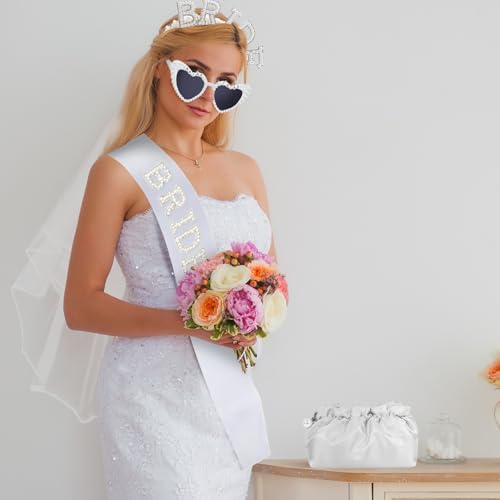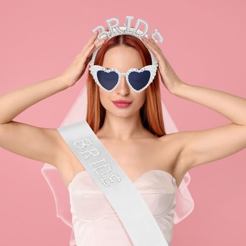 Sponsored Ad - Cinrobiye 6 Pcs Bride to Be Gift Set,Bachelorette Party Decorations,Bridal Shower Crown Sash Veil Bride Sunglasses for Women,Bach Party Favors Engagement Wedding Day Party Accessories