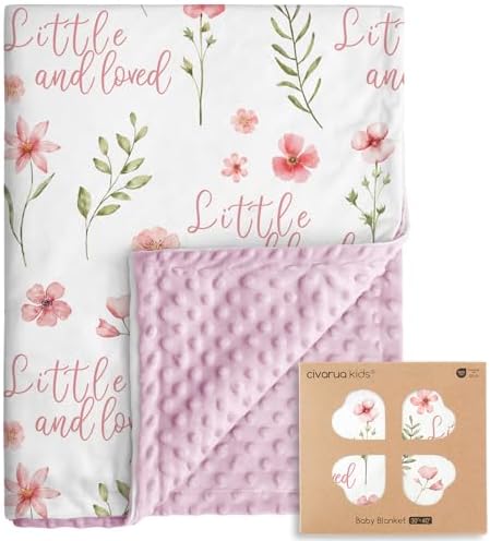Sponsored Ad - Floral Baby Blankets for Girls - Super Soft Nursery Minky Blanket, Newborn Baby Blanket with Double Layer Dotted Backing, Pink Lightweight Bed Throw Blanket, 30 x 40 Inch