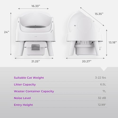 Sponsored Ad - Self-Cleaning Cat Litter Box for Multiple Cats - Automatic, Open Top, White with Liners and Mat Included