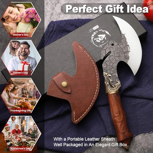 ROCOCO Viking Cleaver Knife Butcher Meat Cutting Boning Knife Hand Forged Chinese Kitchen Axe with Sheath Home Outdoor BBQ Camping Chirstmas Birthday Chirstmas Mother Father Gift Men
