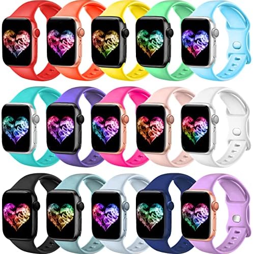 15Pack Watch Bands Compatible for Apple Watch Band 38mm 40mm 41mm 42mm 44mm 45mm 46mm 49mm Women Men, Soft Silicone Sport Band Strap for iWatch Bands Series Ultra 11 10 9 8 7 6 5 4 3 2 1 SE
