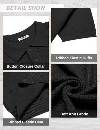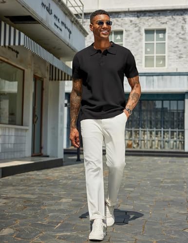 Mens Knit Polo Shirts Short Sleeve Classic Fit Shirts Casual Goft Collared Textured T Shirt