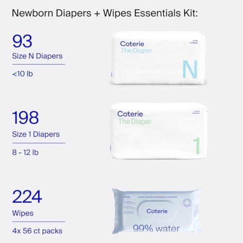 Sponsored Ad - Baby Wipes + Diapers Kit, Size 1 (198 Count) & Size Newborn Diapers (93 Count), 4 Pack (224) Wipes with 99% Water, Plant Based Materials, Hypoallergenic for Sensitive Skin, Baby Essenti