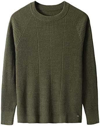 Sponsored Ad - Men's CrewneckSweater and Structure-Knitted Raglan Sleeve Round Neck Pullover Contains Wool
