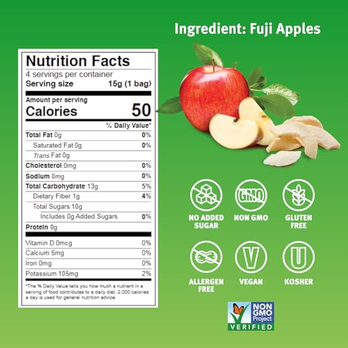 Natural Freeze-Dried Fruit, Apple Single-Serve, No Sugar Added, 0.53 Ounce (Pack of 12)