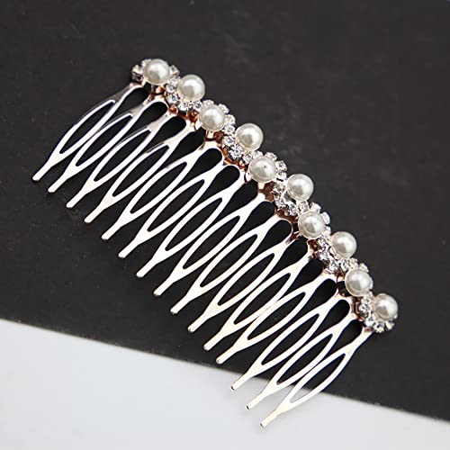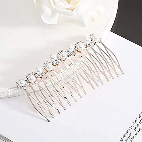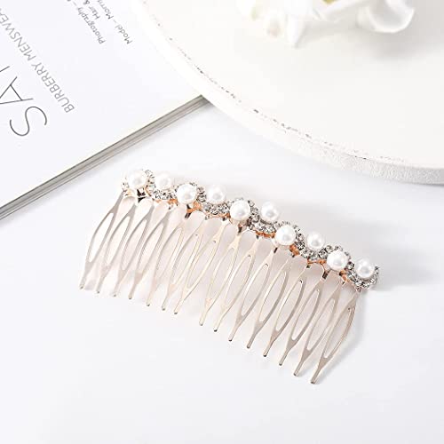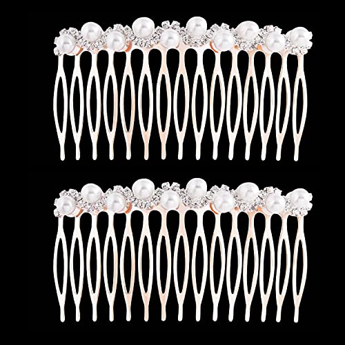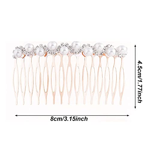 Sponsored Ad - 2Pcs Pearl Crystal Rhinestone Headpieces 15 Teeth Bride Wedding Bridal Hair Combs Clips Rose Gold Headdress Accessories for Women and Girls