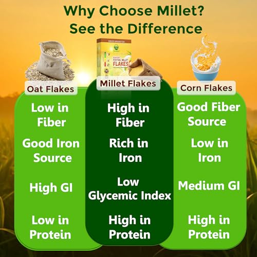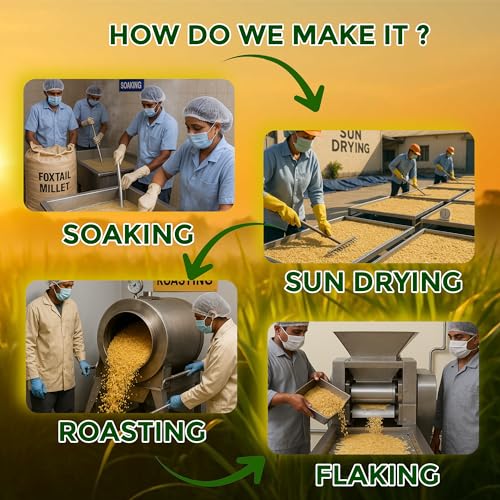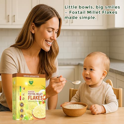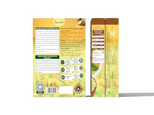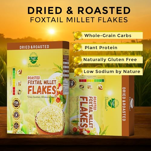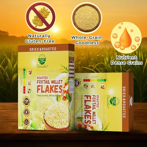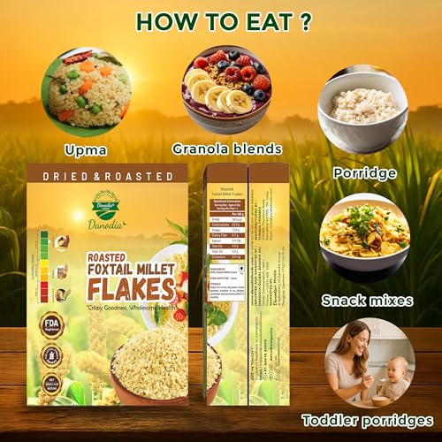 Danodia Foods Organic Foxtail Millet Flakes (450g/17oz) | Roasted & Ready-to-Eat | Wholesome Breakfast Cereal | Ideal for Porridge, Puddings, Desserts & Smoothie Bowls | Gluten-Free & Nutritious | Hig