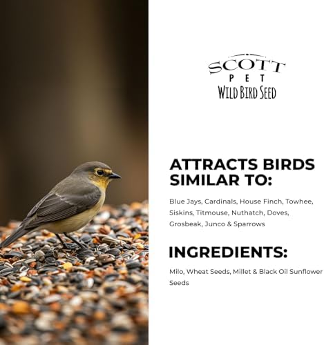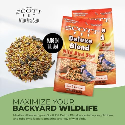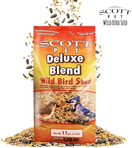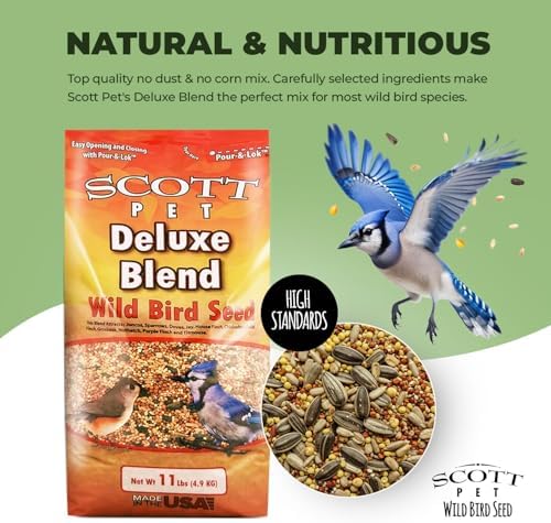 Scott Pet Wild Bird Seed, Deluxe Blend, 11 lbs Bag, No Dust, No Corn Mix, Feed, Great for All Feeder Types, Food for Outside Wild Birds