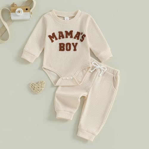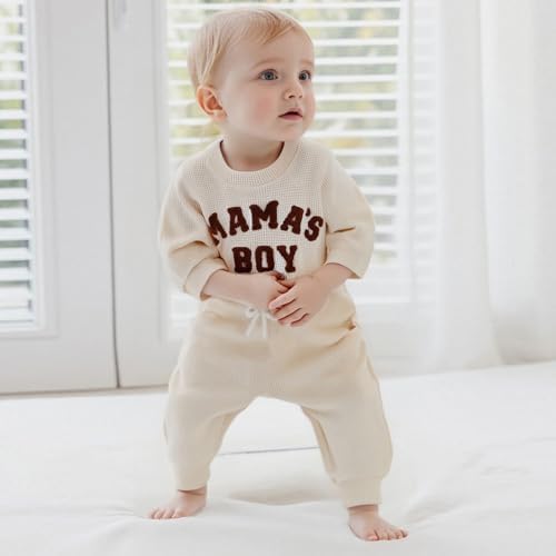 Baby Boy Clothes Letters Embroidered Baby Sweatshirt Romper Waffle Pants Set Infant Boy Fall Winter Outfits