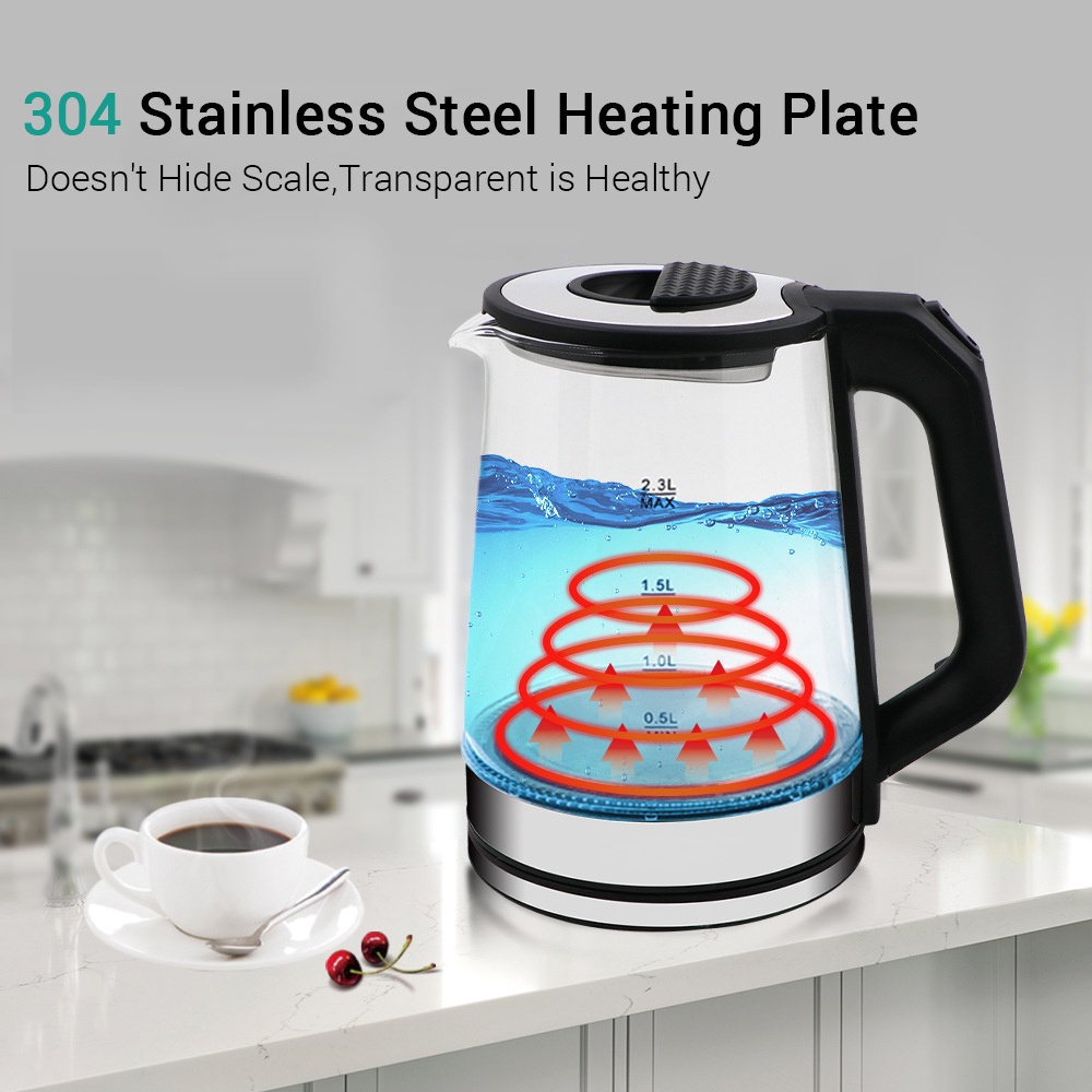Electric 2.3L Glass Kettle Automatic Power-off LED Light Boil-Dry Protection Premium Water Bottle EH0036