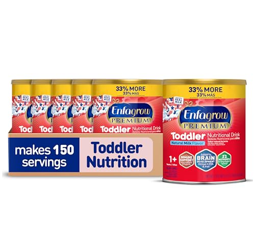 PREMIUM Toddler Nutritional Drink, Made with Real Milk, Brain-Building Omega-3 DHA, Nutrients and Prebiotics for Growth & Immune Support, Non-GMO, Toddler Milk Powder, 32 Oz Can, 6 Count
