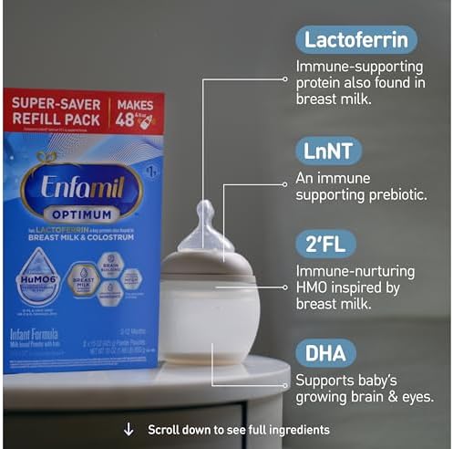 Optimum (Enspire), Our Closest Formula to Breast Milk, Immune-Supporting Lactoferrin and Brain-Supporting DHA Baby Formula, Powder 30 Oz Refill, Pack of 4