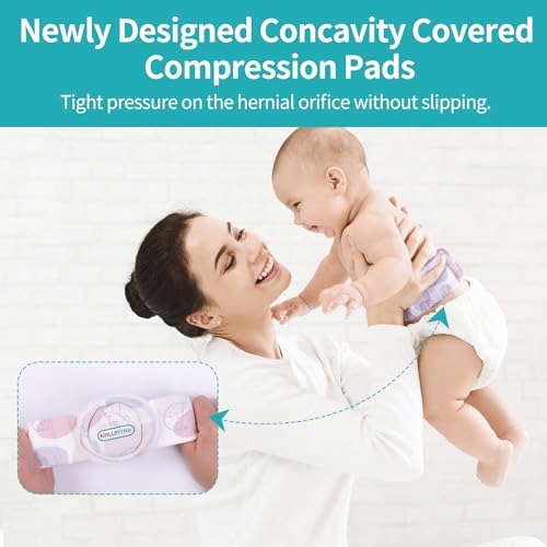 Hernia Belt for Baby,Umbilical Hernia Belt with Convex Covered Compression Pads ,Breathable Baby Belly Band,Adjustable Newborn Belly Support Band Wrap with 4 Hernia Packs(PURPLE-Small)
