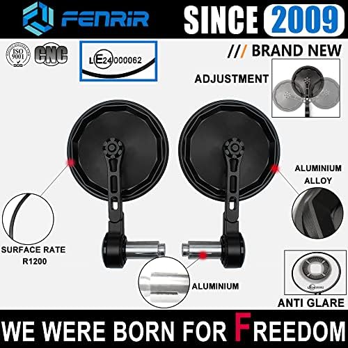 Motorcycle Handlebar Bar End Mirror CNC Forged Aluminum Alloy Black Round foldable Anti-vibration Anti-glare Large field of view For Sport Naked Street Cruiser Scooter Heritage Roadster