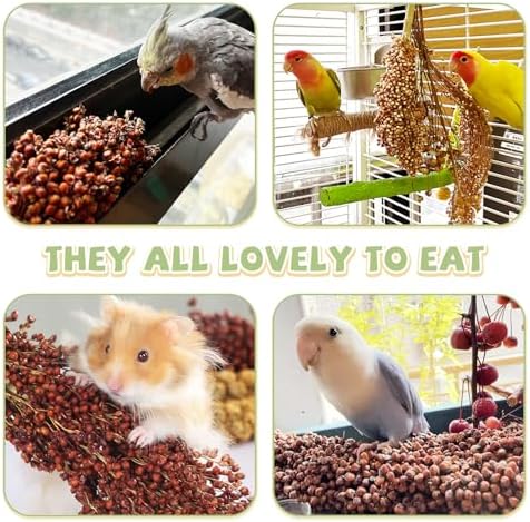 Fhiny Millet Spray for Birds, 6 PCS Natural Sun-Dried Red Sorghum Grain for Birds Seed Original Parrot Treats & Supplement Parakeet Food for Cockatiels Lovebirds Finches Budgies Pigeons Hamsters