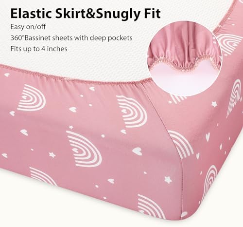 Baby Bedside Bassinet Sheets Fitted Girl, 33”x20” Compatible with Baby Delight Dream On Me & Most Rectangle Bedside Sleeper Bassinet Mattresses, Super Soft Microfiber Pink Rainbow