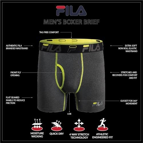 Men's 6" Performance Boxer Briefs with Fly or No Fly Front, 95% Cotton, 5% Spandex Briefs, 4-Pack