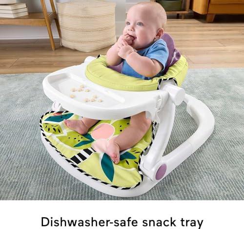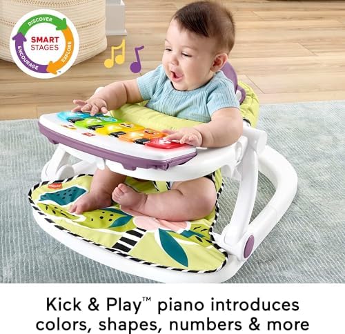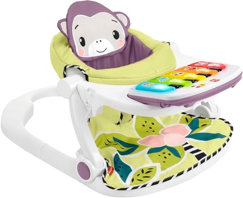 Fisher-Price Portable Baby Chair Kick & Play Deluxe Sit-Me-Up Seat with Piano Learning Toy & Tray for Infants to Toddlers, Purple Monkey