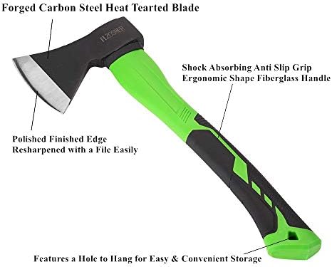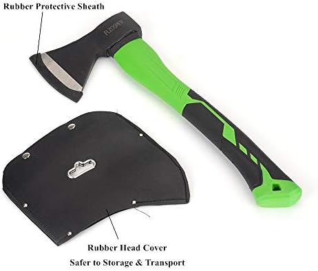 FLZOSPER Chopping Axe,15” Camping Hatchet,Forged Steel Wood Splitting Tool with Strong Fiberglass Handle and Anti-Slip Grip with Anti-Slip Grip-Even Free Head Cover
