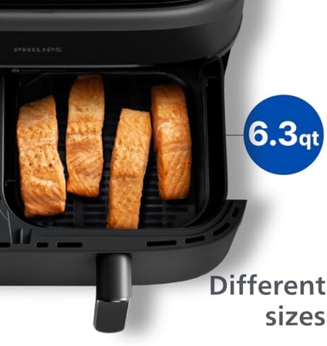 Dual Basket Air Fryer 3000 Series, 8-in-1 functions, 9.5 Quarts, 2 Drawers, Auto-sync Cooking Time, 90% Less Fat, Rapid Air Technology, HomeID Recipe App, Dishwasher Safe, Black, (NA350/00)