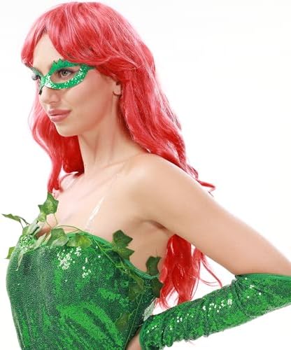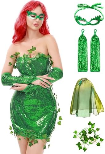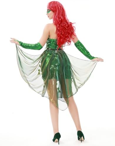 Funna Poison Costume Women Ivy Halloween Outfit 4 Piece with Eye Mask Gloves Cape