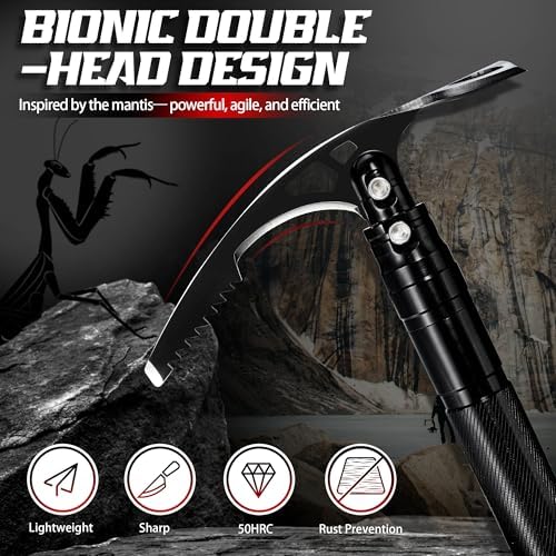 Pick Axe 8 in 1, Folding Pickaxe Mattock with Multi-Purpose Garden Hoe and Survival Knife, Stainless Steel Pick Axes for Digging, Ice Chipping and Weeding