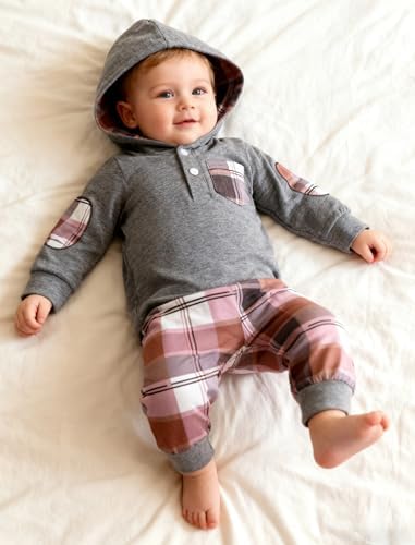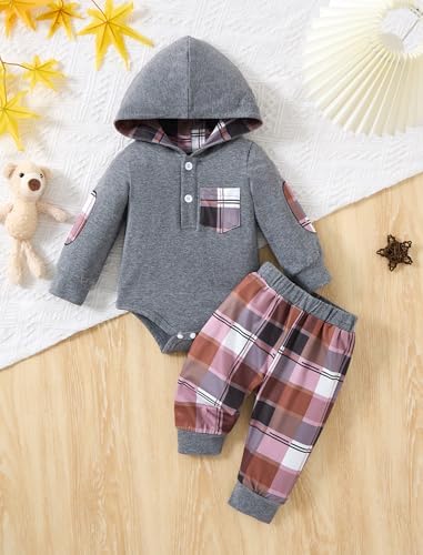 Sponsored Ad - Baby Boy Clothes Long Sleeve Hoodie Romper and Plaid Pants Set Fall Winter Baby Boy Outfit 0–18 Months