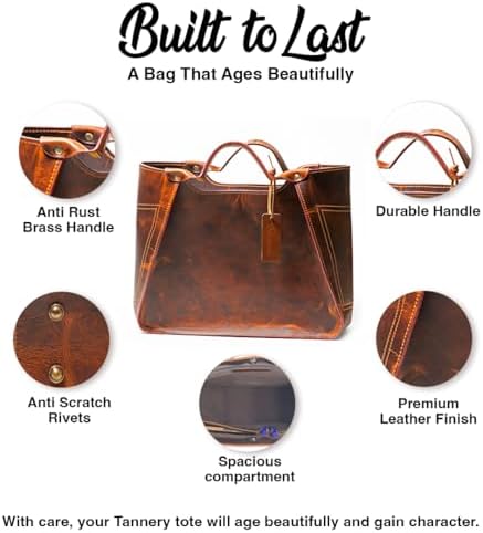 Tannery Genuine Full Grain Leather Shoulder Tote Bag for Women Large Handbag Ladies Purse Adjustable Strap Satchel Travel Bag
