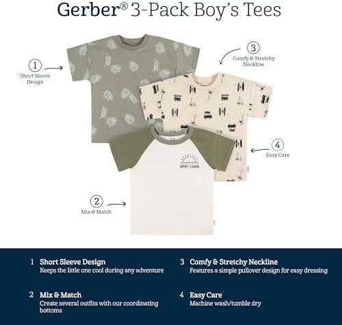 Baby Boys' Toddler 3-Pack Short Sleeve Pocket Tees