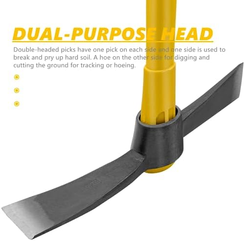 Cutter Mattock, 36" Heavy Duty Pick Axe with Forged Heat Treated Steel Blades Hoe for Weeding, Prying and Chopping, Digging Tool with Fiberglass Handle (36.3inch, Yellow)