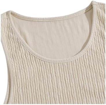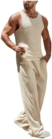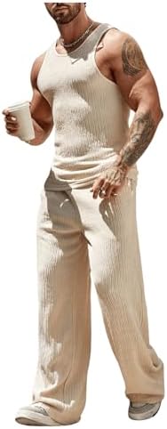 Men's 2 Piece Linen Sets Rib Knit Summer Outfits Sleeveless Tank Top Baggy Wide Leg Pants Set